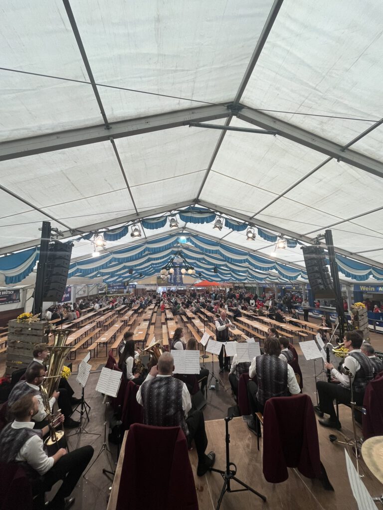 Am Sonntag den 19.10, waren wir zu Gast bei der Kirchweih in Hilzingen. Von 11:00 bis 13:30 Uhr durften wir den Frühschoppen im Festzelt des Musikvereins Hilzingen musikalisch gestalten, und gleichzeitig den letzten für uns dieses Jahr. Mit einem abwechslungsreichen Programm aus traditioneller Blasmusik, modernen Stücken und schwungvollen Polkas sorgten wir für beste Stimmung im Zelt und unterhielten das Publikum bei toller Atmosphäre.
